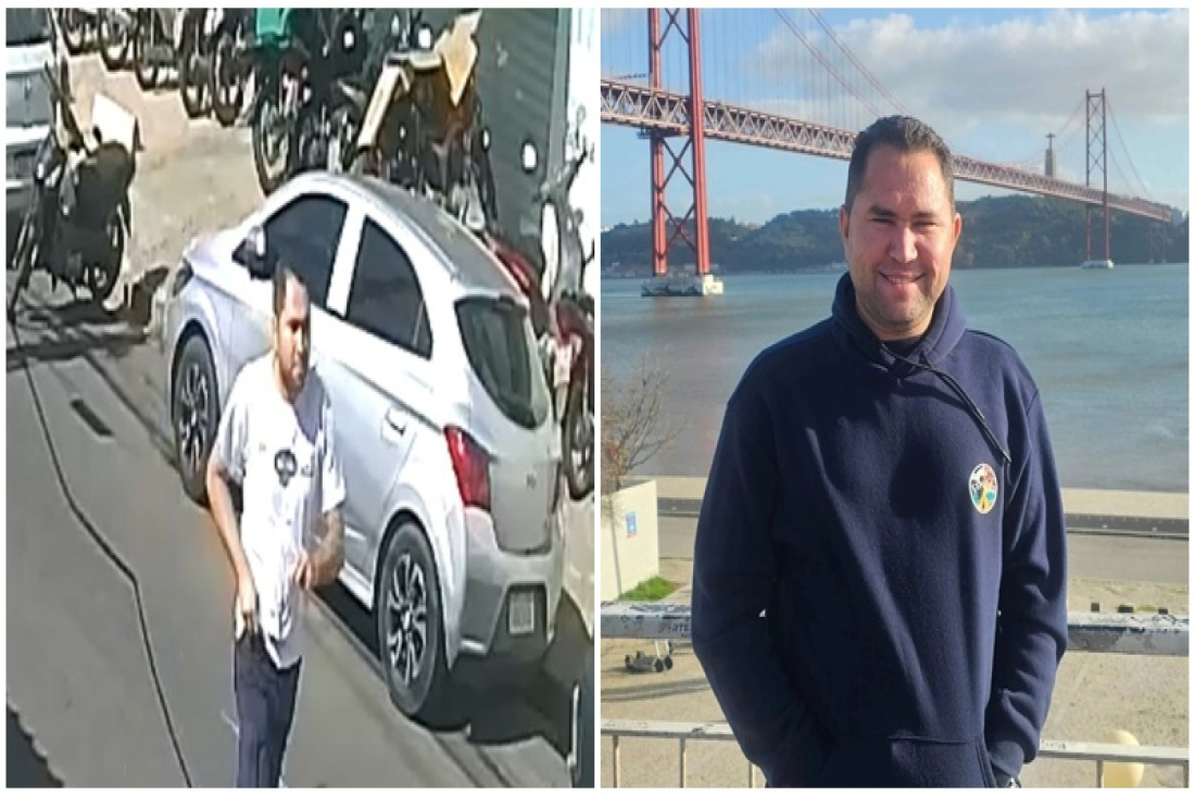 O crime brutal aconteceu em um estacionamento, onde câmeras de segurança registraram o momento em que o suspeito surpreende o casal pelas costas, efetua diversos disparos e deixa o local caminhando com a arma escondida.