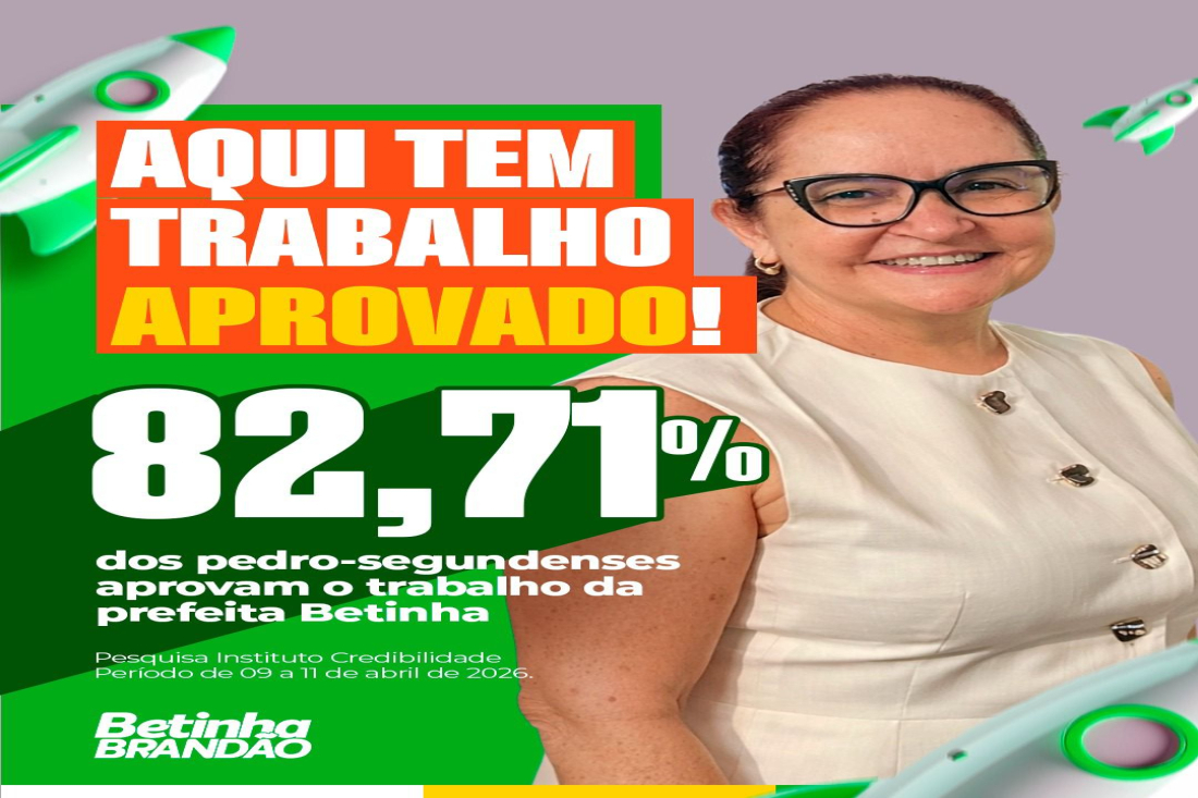A gestão da prefeita Betinha alcançou 82,71% de aprovação popular em Pedro II, de acordo com pesquisa de opinião pública divulgada pelo Instituto Credibilidade. O levantamento, realizado na segunda semana de abril, também verificou áreas estratégicas da administração, como saúde, esporte e lazer, turismo e educação.