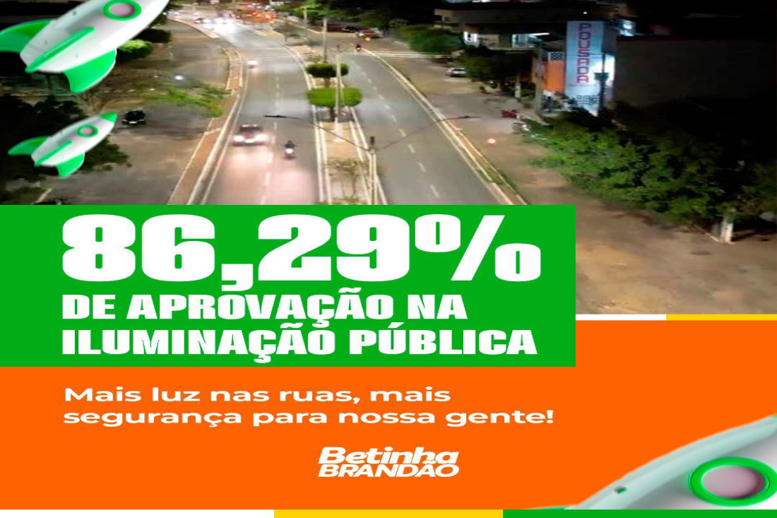 Entre os serviços avaliados de forma específica, a iluminação pública aparece com um dos melhores desempenhos do levantamento. Segundo a pesquisa, 86,29% dos entrevistados disseram estar satisfeitos com o serviço.