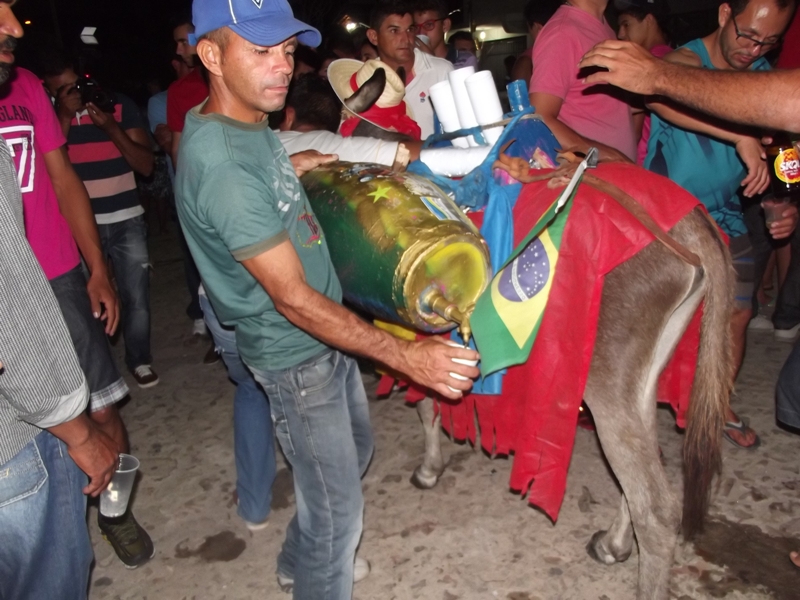 O jegue que é responsável por levar as ancoretas cheias de cachaça em passeata pelas ruas da cidade é o mesmo há 07 anos, a organização informa que ele é sempre bem cuidado e alimentado antes do evento.
