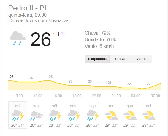 O mês mais chuvoso de 2015 foi fevereiro com 180 mm, este ano choveu só 43 mm no mesmo mês, mas, em compensação o mês de março de 2016 foi o que registrou o maior acumulado de chuvas dos últimos anos com 301,5mm diferente de 2015 que teve 177,5mm, e a previsão para os próximos dias é de mais chuvas para Pedro II.