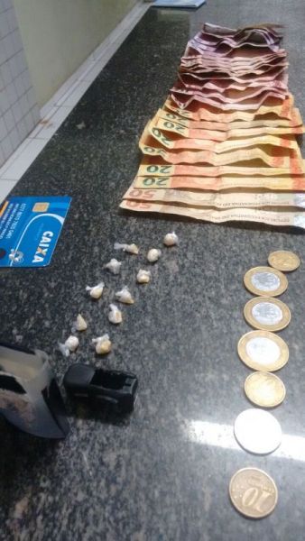Era por volta das 17h00min quando os policias fizeram a abordagem do mesmo que se encontrava em situação suspeita, com ele foram encontradas varias trouxas de drogas, o que levou o mesmo a receber voz de prisão.