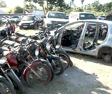 Dezenas de veículos e outros bens estão virando sucata em Teresina (PI) por falta de leilão. São itens apreendidos em operações contra o tráfico de drogas e que só podem ser leiloados com a presença de um representante do Ministério da Justiça.