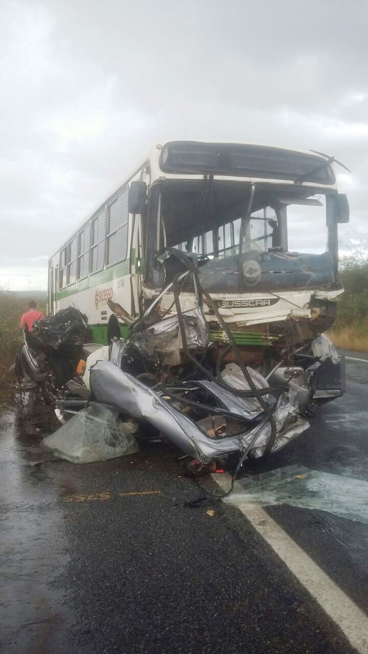 Tio e sobrinho estavam na caminhonete que colidiu de frente com o ônibus. Os corpos ficaram presos nas ferragens do veículo. Outras cinco pessoas, passageiras do ônibus, ficaram feridas. Duas delas em estado grave. Segundo a PRF, a pista estava molhada.