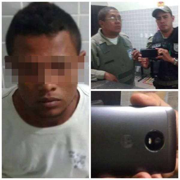 “Policiais Militares do 15° BPM, Sargento Lisboa e Soldado Cleiton, efetuaram a prisão de W.V. O. O mesmo roubou um celular na noite dessa quinta-feira(27.07) no Conjunto José de Almeida. Elemento já reincidente na prática de roubo a celulares”, infirmou o 15ª Batalhão.