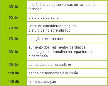 (Tabela dos efeitos de volume sonoro ao ouvido humano)