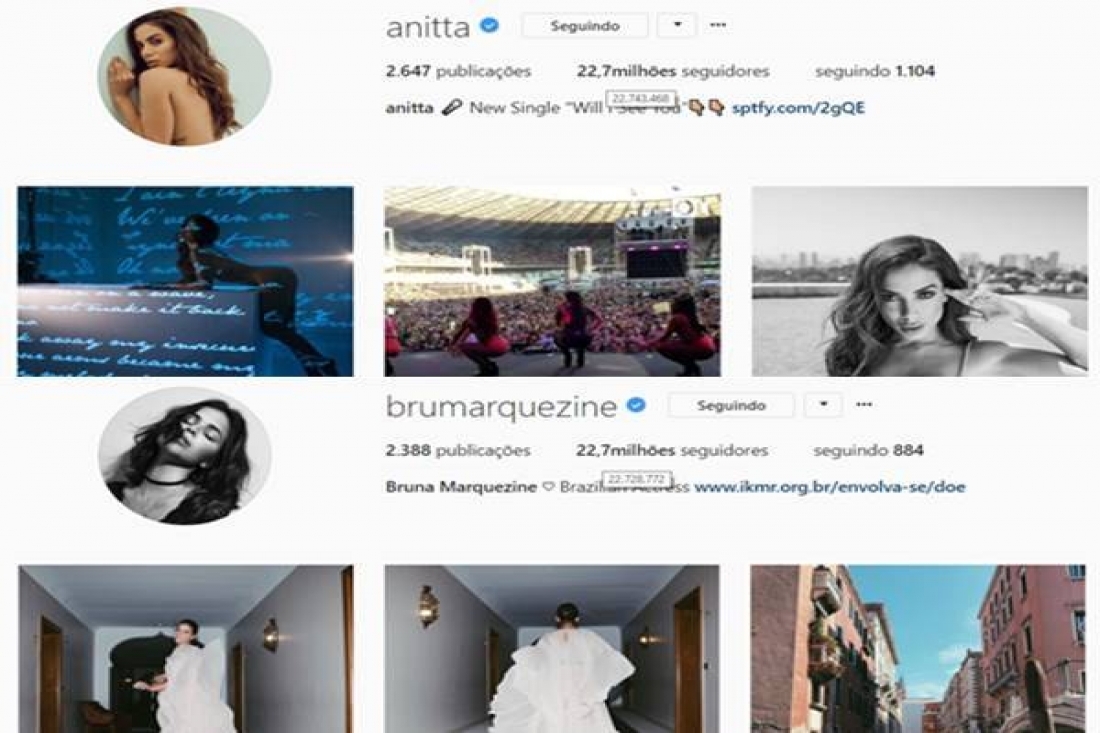 Anitta supera Bruna Marquezine e passa a ser a brasileira mais seguida do Instagram