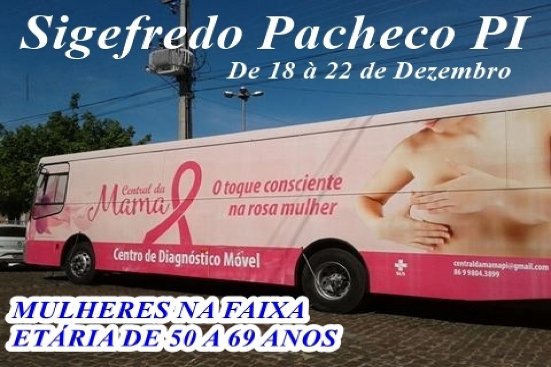 A Secretaria Municipal de Saúde de Sigefredo Pacheco, estará realizando no município atendimento as mulheres, na faixa etária de 50 a 69 anos, através do ônibus da mamografia, com exame da mama.