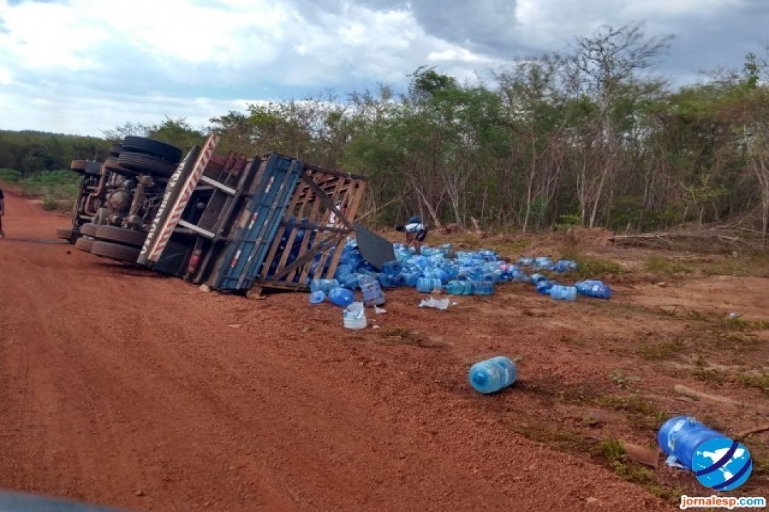 Um caminhão carregado com galões de água mineral tombou nesta terça-feira (26/12) na PI 222, mais precisamente próximo à Ladeira do Aposento, situada no município de Batalha, região Norte do Piauí.