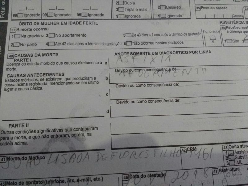 Segundo o medico legista, Dr. João Lisboa de Flores Filho, que assina o laudo ,a morte de André se deu por asfixia por consequência de Afogamento, ou seja, André, segundo o medico legista morreu AFOGADO.
