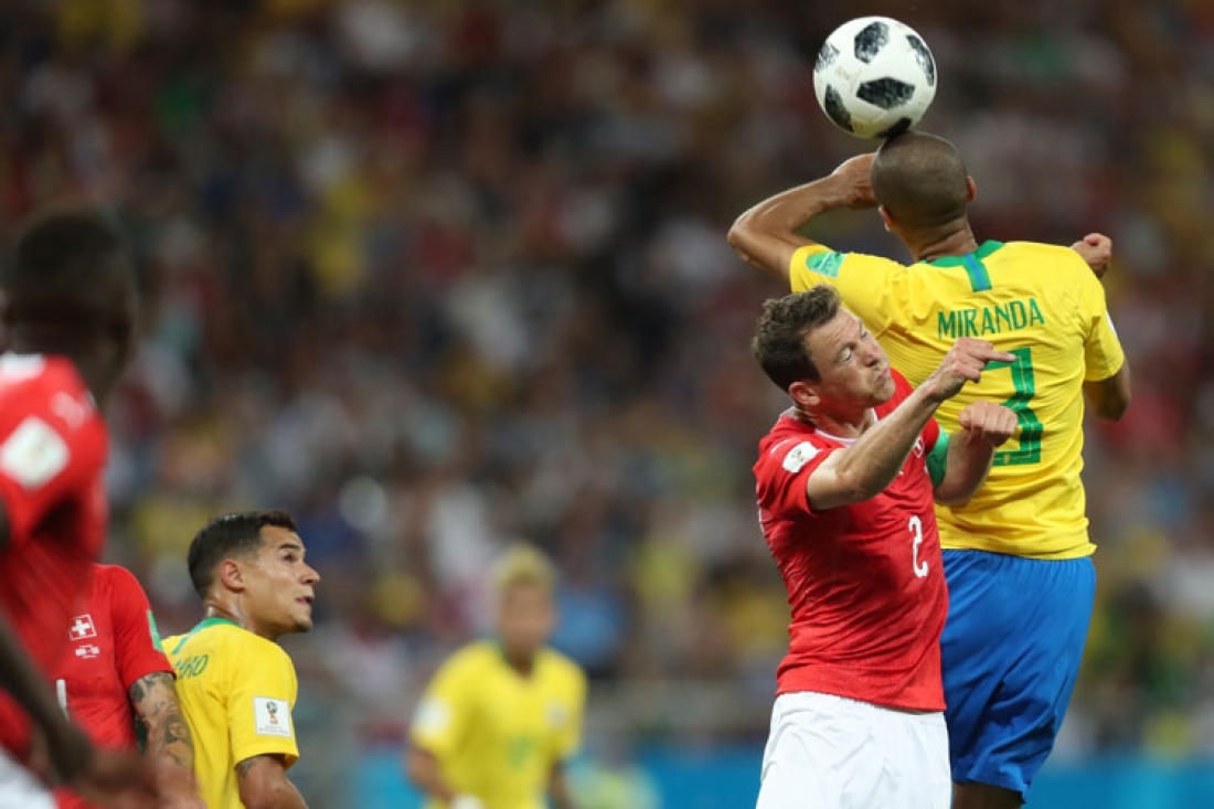 Segundo o técnico Tite e o coordenador de seleções, Edu Gaspar, o zagueiro Miranda teria sido empurrado pelo suíço na jogada do gol.