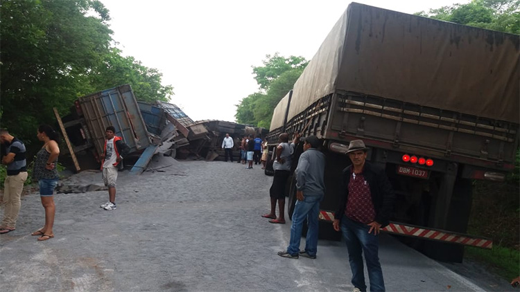 BR-135 é totalmente interditada após acidente com carretas; longo congestionamento
