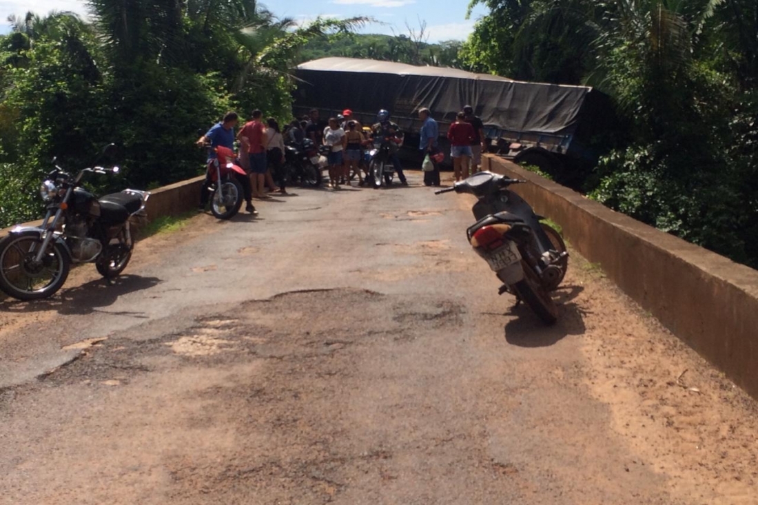 Como a ponte é muito estreita e outro veiculo vinha no sentido contrário, o motorista da carreta identificado como Fábio fez uma frenagem brusca e desceu o barranco já na cabeceira da ponte vindo a ser totalmente interditada a pista.