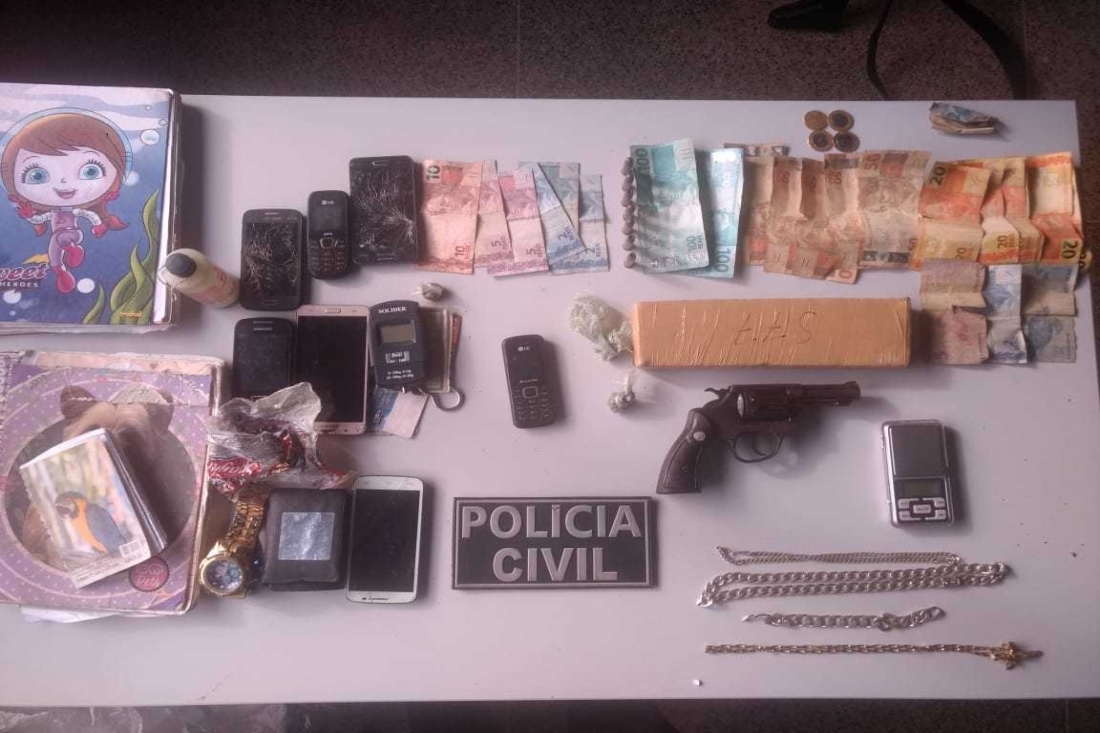 Ao todo foram cumpridos cinco mandados de busca e apreensão em imóveis tanto na zona Urbana quanto na zona Rural. Durante a operação foram encontrados um revólver calibre 38 com numeração raspada, sete munições de mesmo calibre, um tablete de maconha, três trouxinhas de maconha, balança de precisão, dinheiro trocado e seis celulares.