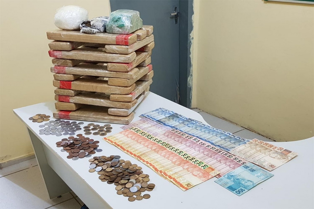 Além dos 23 tabletes de maconha, foram apreendidos ainda dois tabletes de crack e um invólucro de plástico com cocaína pastosa.