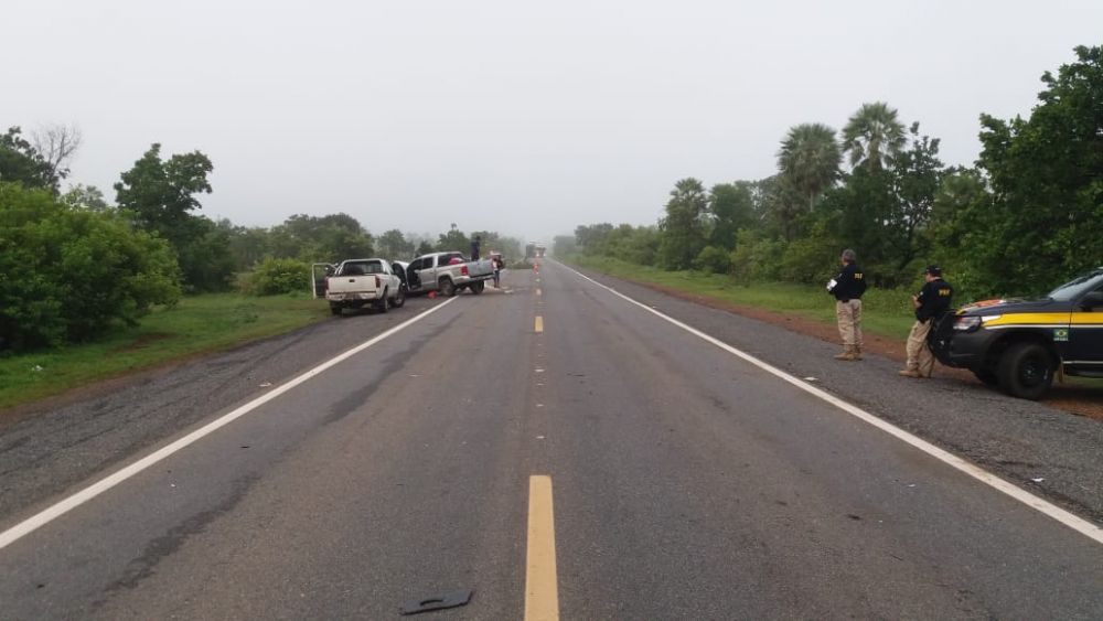 Uma TOYOTA/Hilux branca, placas de Fortaleza, que seguia sentido Teresina com quatro ocupantes colidiu frontalmente com uma VW/Amarok prata, placas de Peixe-boi (PA), também com quatro ocupantes, que seguia no sentido contrário.