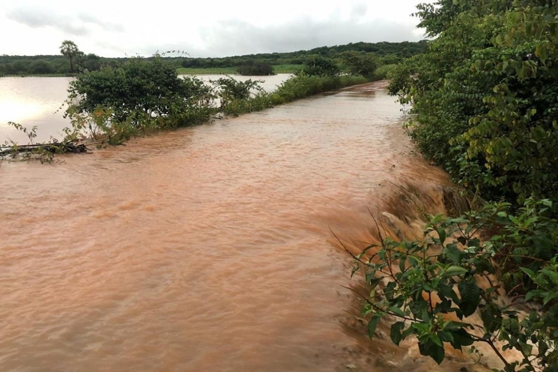 A água já ultrapassa a estrada e moradores temem que o volume faça romper a parede de contenção do açude isolando algumas localidades.