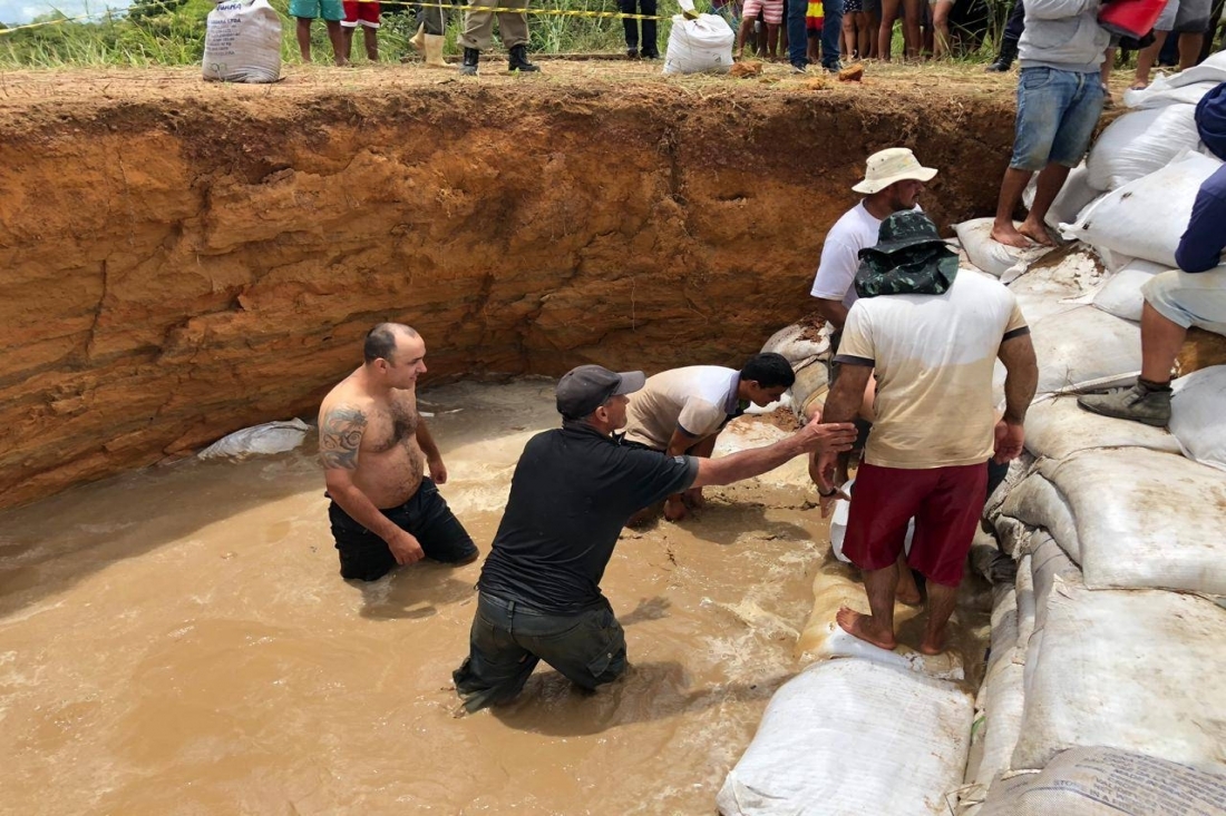 A iniciativa reuniu mais de cem pessoas, nesta quinta-feira (14). Cerca de 12 mil sacos de areia têm sido utilizados como medida emergencial para diminuir os riscos de desabamento de parte do reservatório. Com o grande volume de chuvas na região, na última semana, a medida tem ajudado a minimizar os impactos de um desabamento iminente, o que poderia causar o alagamento de várias localidades de Ubajara, onde moram mais de três mil pessoas.