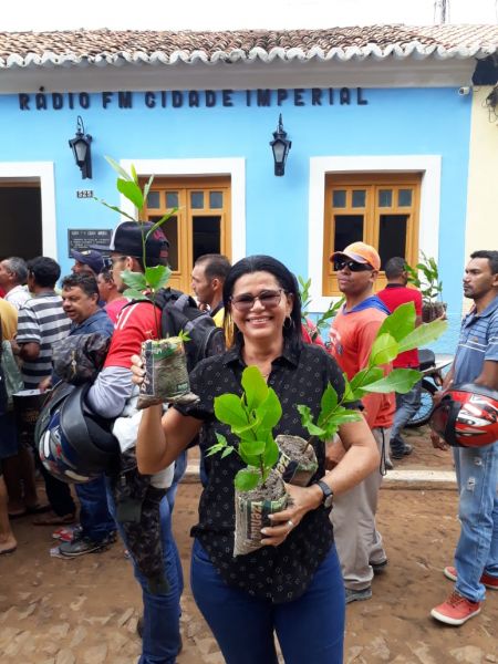 Uma grande fila de pessoas de Pedro II e região se formou para receber suas mudas do cajueiro anão.