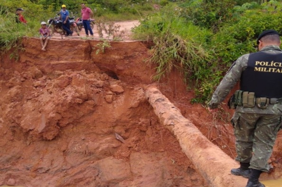 O rompimento ocorreu nesta sexta-feira (29), após a forte chuva que atingiu a região. Segundo o comandante da Polícia Ambiental, Washington Soares Francisco, as famílias ficaram isoladas devido à queda de sete pontes que foram destruídas pela força da água.