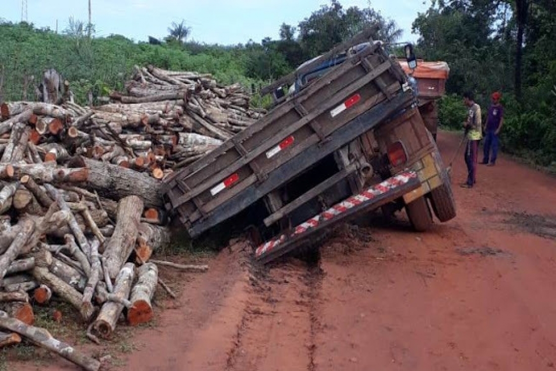 Um caminhão carregado de madeira afundou na lama em uma estrada que dá acesso ao assentamento Comprida na manhã dessa quinta-feira (02/05) no município de Buriti dos Lopes-PI. Por pouco trabalhadores que estavam no local não foram esmagados pela carga.