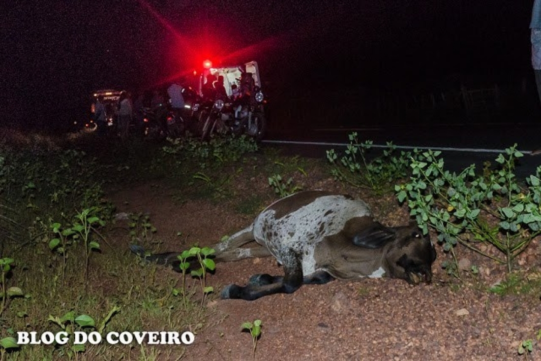 O pedreiro Pedro Antônio de Sousa, 57 anos, foi socorrido em estado grave após colidir a moto que conduzia contra dois bezerros. O acidente aconteceu na noite desta quinta-feira (2), por volta das 18h30, na rodovia PI-301, próximo a entrada que dá acesso ao Assentamento Vidéu, zona rural de Cocal, Norte do Piauí.