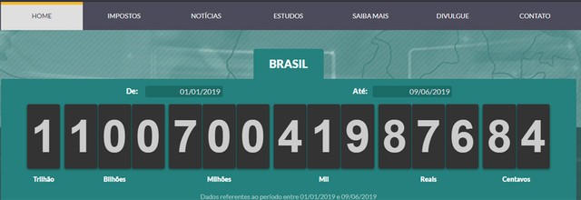 Em 2018, o Impostômetro superou a marca de R$ 2,3 trilhões em impostos pagos pelos brasileiros no ano.