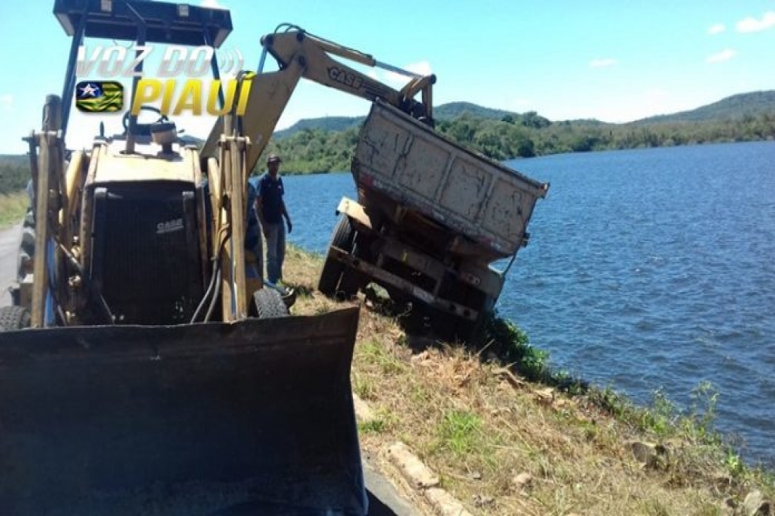 Um caminhão caçamba que estava fazendo transporte de areia para construção na Comunidade Banda/Caldeirão, quase caiu nas águas do açude Caldeirão, na manhã desta segunda-feira (22/07), em Piripiri, no Norte do Piauí.