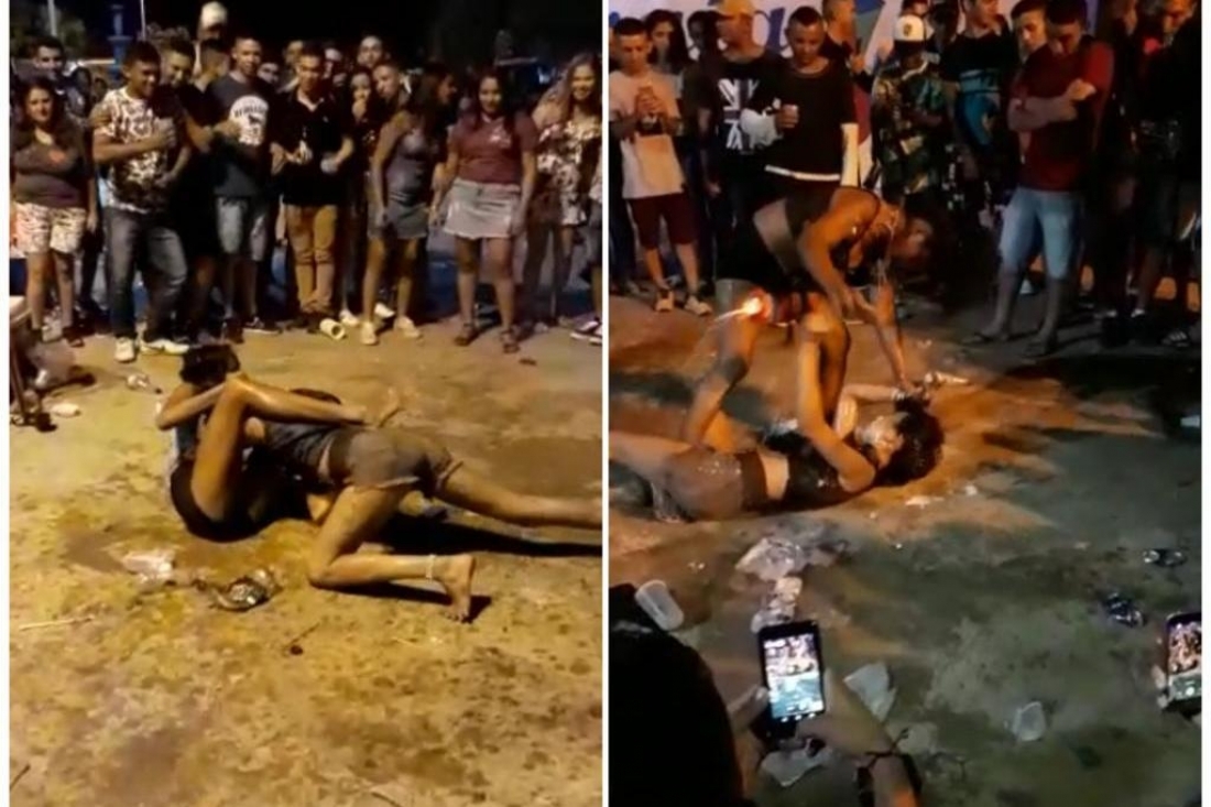 Só após vários minutos, um rapaz tentou segurar uma das envolvidas e iniciou uma briga generalizada, em seguida a festa parou.