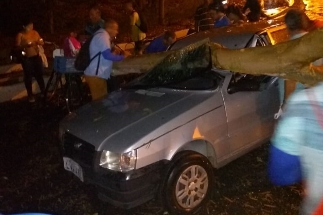 A Ponte Metálica teve o trânsito interditado após uma árvore cair em cima de um carro. Um táxi também foi danificado com a queda de uma árvore.
