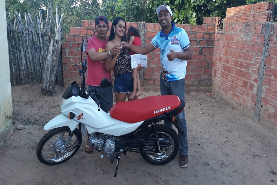 Já na sede de Lagoa de São Francisco foi entregue uma moto pop 110 zero km para a ganhadora Maria Valentina de apenas 02 anos que foi muito festejado pela a sua mãe Roberta e família.
