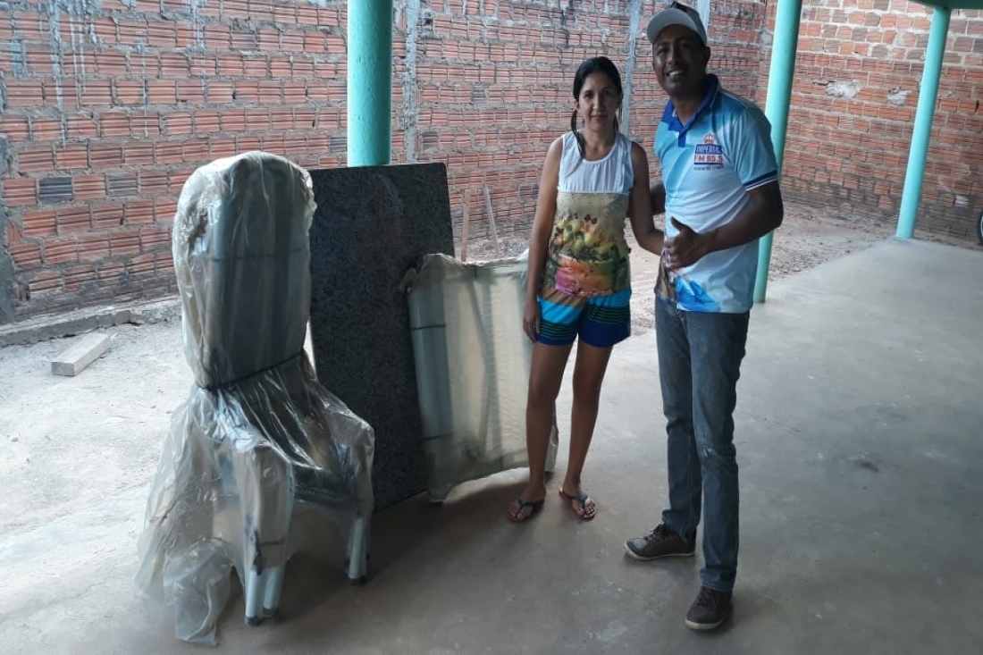 Na comunidade Mororó fazendo a entrega de uma mesa granito para o ganhador José Barros de Sousa.