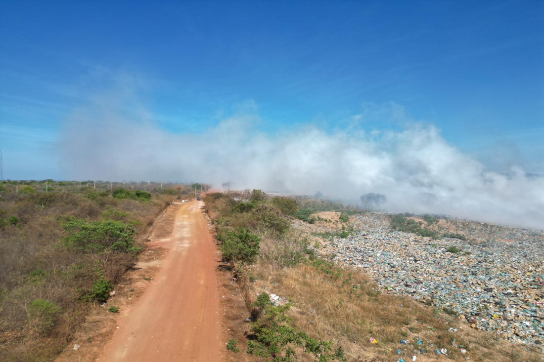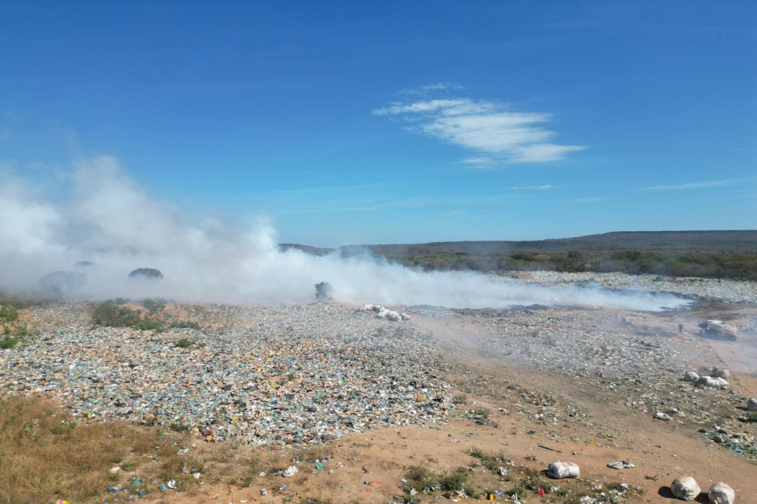 Defesa Civil atua para conter incêndio no lixão da Aroeira em Pedro II
