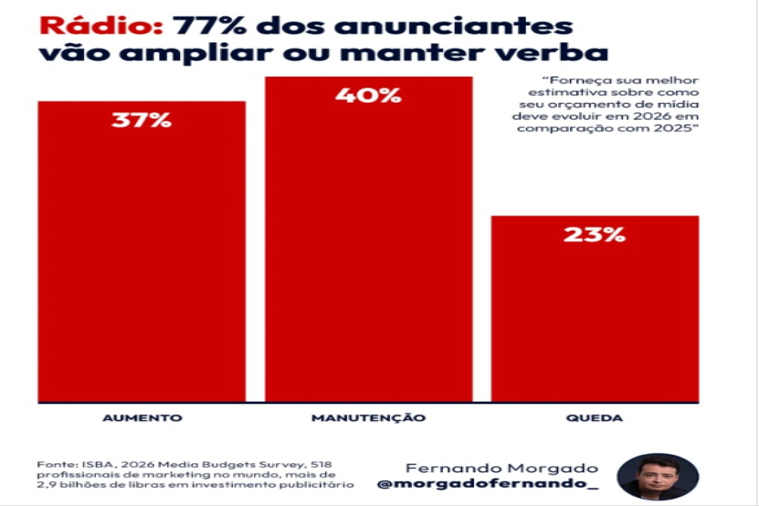 Para 2026, a construção de marca volta ao foco e o rádio continua sendo um dos meios de referência para isso, pois tem um custo-benefício sem igual para geração de recall.