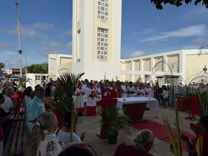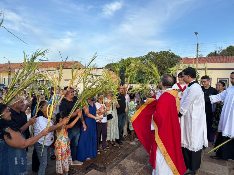 Na Paróquia de Nossa Senhora da Conceição, o rito teve início com a tradicional Procissão de Ramos, saindo da Capela de Santo Antônio em direção à Igreja Matriz, onde foi celebrada a Santa Missa.