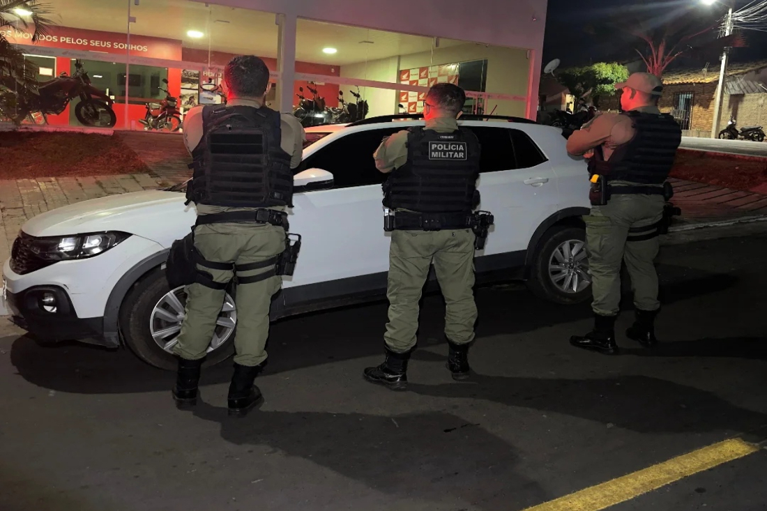 Na noite desta quarta-feira (27), a guarnição de serviço da 2ª Cia/12º BPM foi acionada por meio de uma ligação anônima, informando que um veículo VW T-Cross branco estaria em situação irregular.