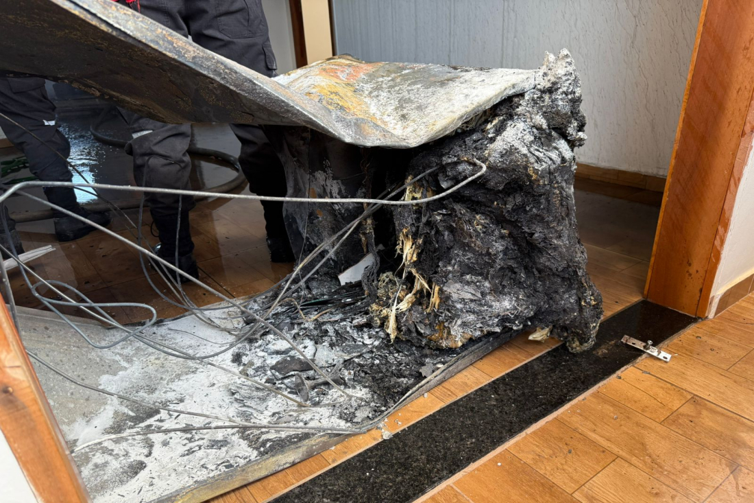 O fogo destruiu o mobiliário da cozinha e a porta que dava acesso à sacada foi arremessada para fora pela força da explosão. Felizmente, ninguém ficou ferido.