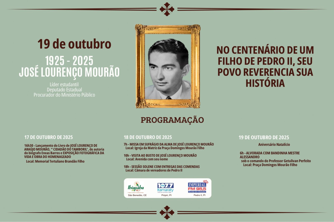 Pedro II e Todo o Piauí celebram o centenário de nascimento de um de seus filhos mais ilustres José Lourenço Mourão
