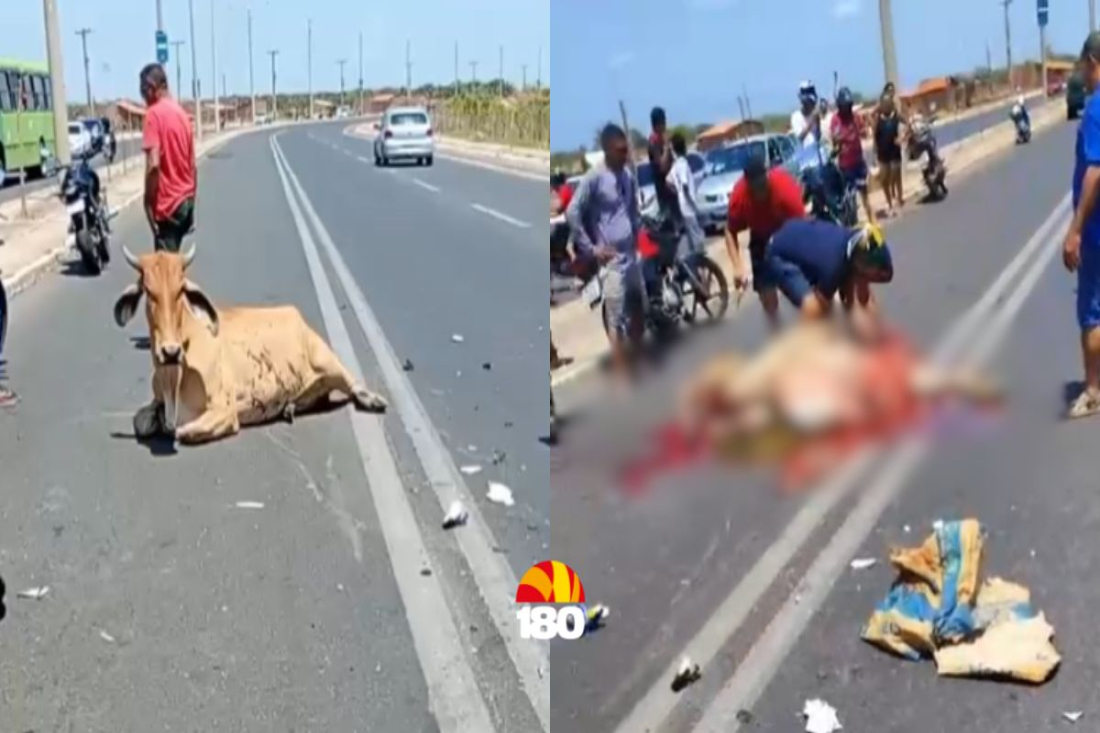 A Gerência de Proteção Animal da Secretaria de Segurança Pública do Piauí (GPA/SSP-PI) está acompanhando o caso de um grave acidente ocorrido no domingo (19/10) na avenida Poty Velho, em Teresina. Um motociclista de 42 anos colidiu com uma vaca e veio a falecer no local. Logo após o impacto, o animal — ainda vivo — foi esquartejado de forma brutal, o que provocou forte repercussão nas redes sociais.