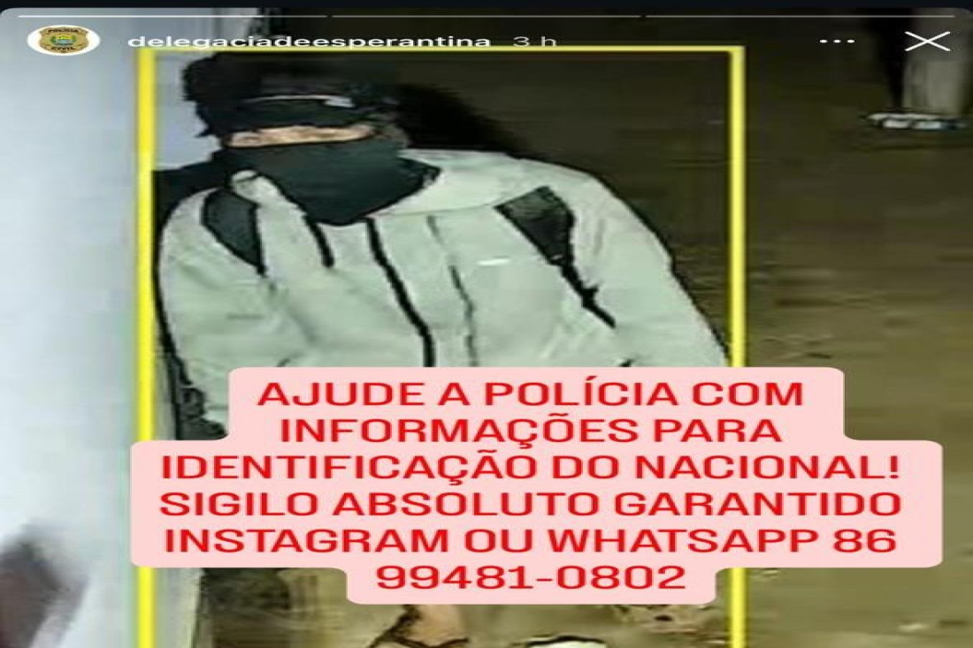 A Delegacia Seccional de Esperantina, responsável pela investigação, divulgou a imagem do suspeito e segue apurando a participação de outras pessoas envolvidas no caso, além das circunstâncias do furto.