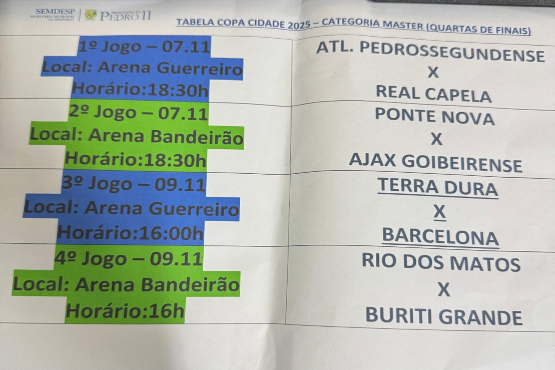 Pedro II: Definidos os confrontos das quartas de final da Copa Cidade – Categoria Master