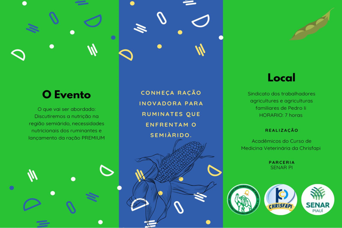 Nesta quinta-feira, 6 de novembro, o Sindicato dos Trabalhadores Agricultores Familiares de Pedro II será palco de uma importante atividade voltada ao fortalecimento da produção rural no semiárido piauiense. A programação contará com uma palestra sobre Nutrição para Animais Ruminantes no Semiárido Piauiense, realizada por acadêmicos do curso de Medicina Veterinária da CHRISFAPI.
