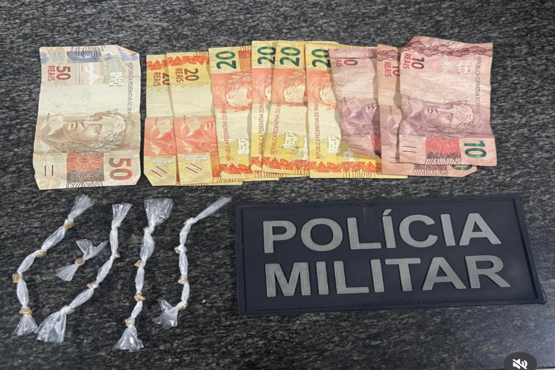 Ao verificar o conteúdo do objeto, os militares encontraram 17 pedras de substância análoga a crack, além de R$ 222,00 em dinheiro trocado, valor possivelmente proveniente da comercialização da droga.