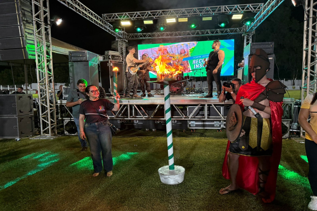O acendimento da Tocha Olímpica, conduzido por professores de educação física e pela prefeita, marcou a abertura oficial dos jogos.