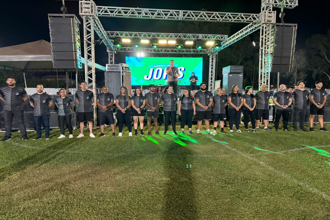 A cerimônia começou com a composição da mesa-fronte de honra, incluindo autoridades como a prefeita Betinha Brandão e secretários municipais, como a Secretária de Educação, Helany Max, Secretário de Juventude, Mateus Rodrigues e Coordenadora Geral dos JOPS, Professora Suzana Uchôa.
